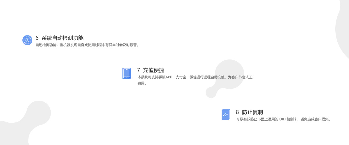 - 可接入微信公眾號,無人值守,用戶自助充值